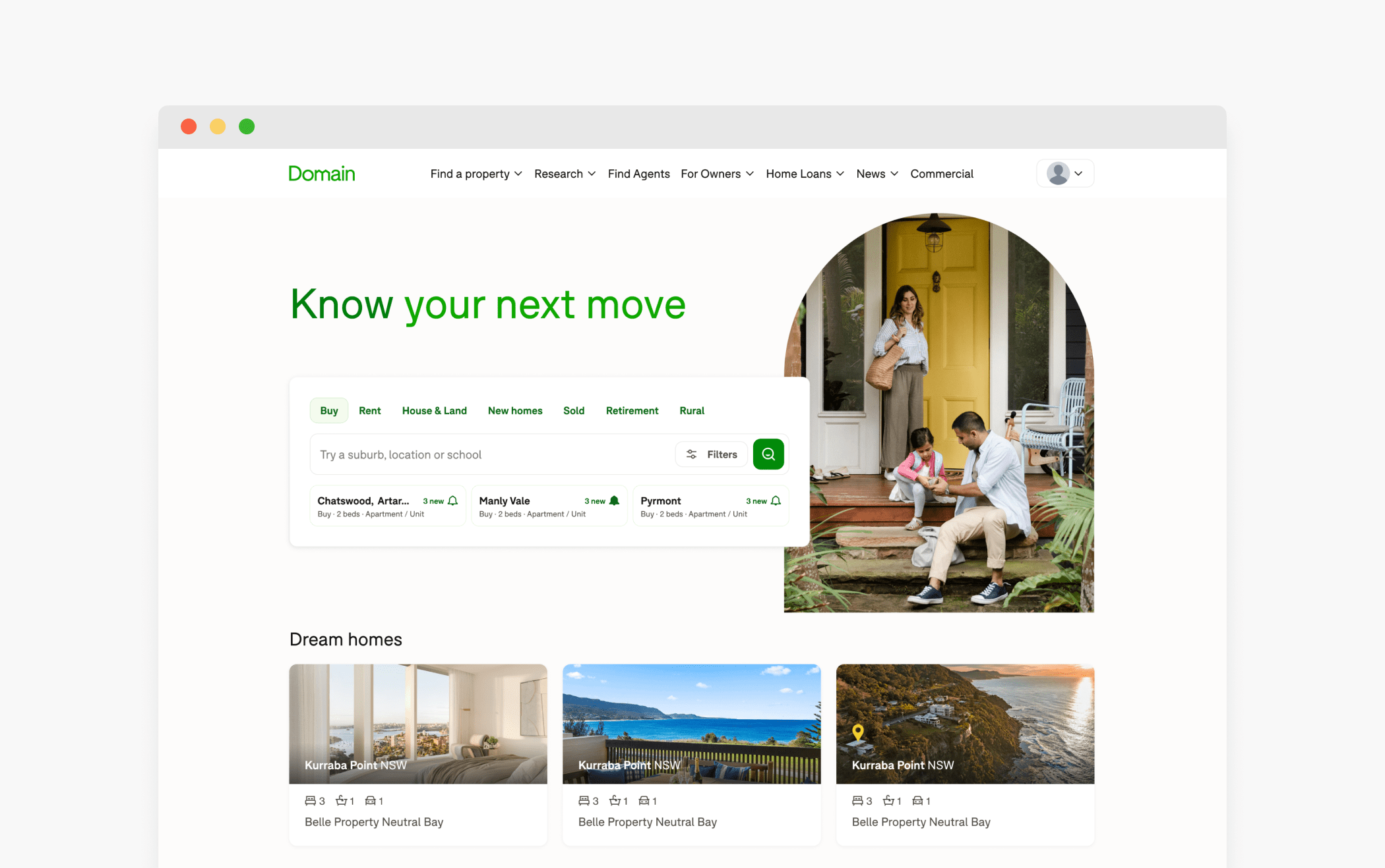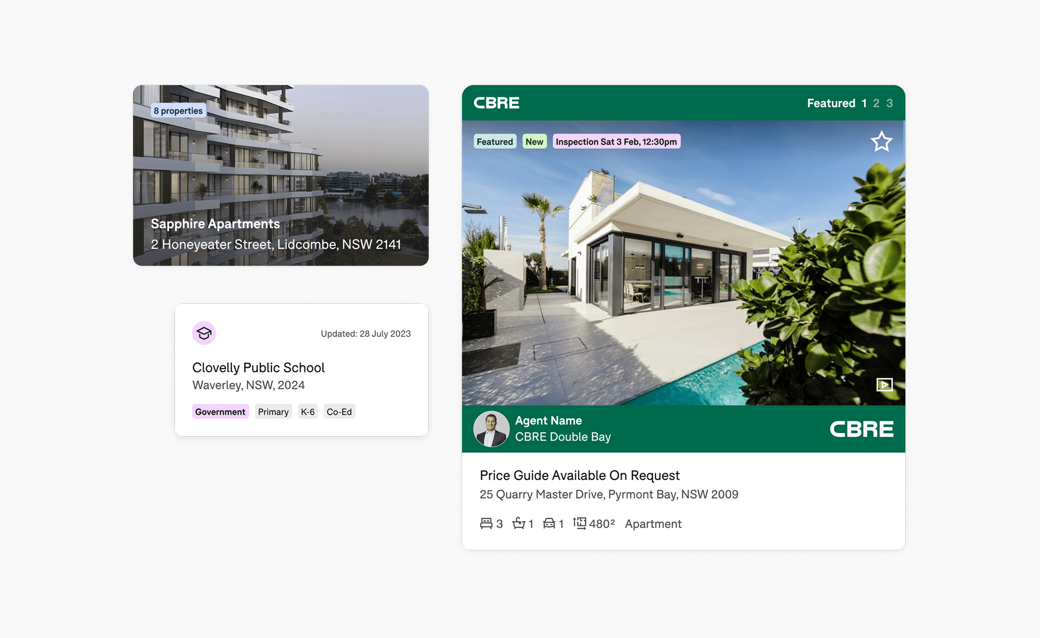 The existing product was dated—visually flat, container-heavy, and inconsistent across platforms. It didn’t reflect Domain’s evolution as a brand or the emotional weight behind the property journey. We needed to change that.