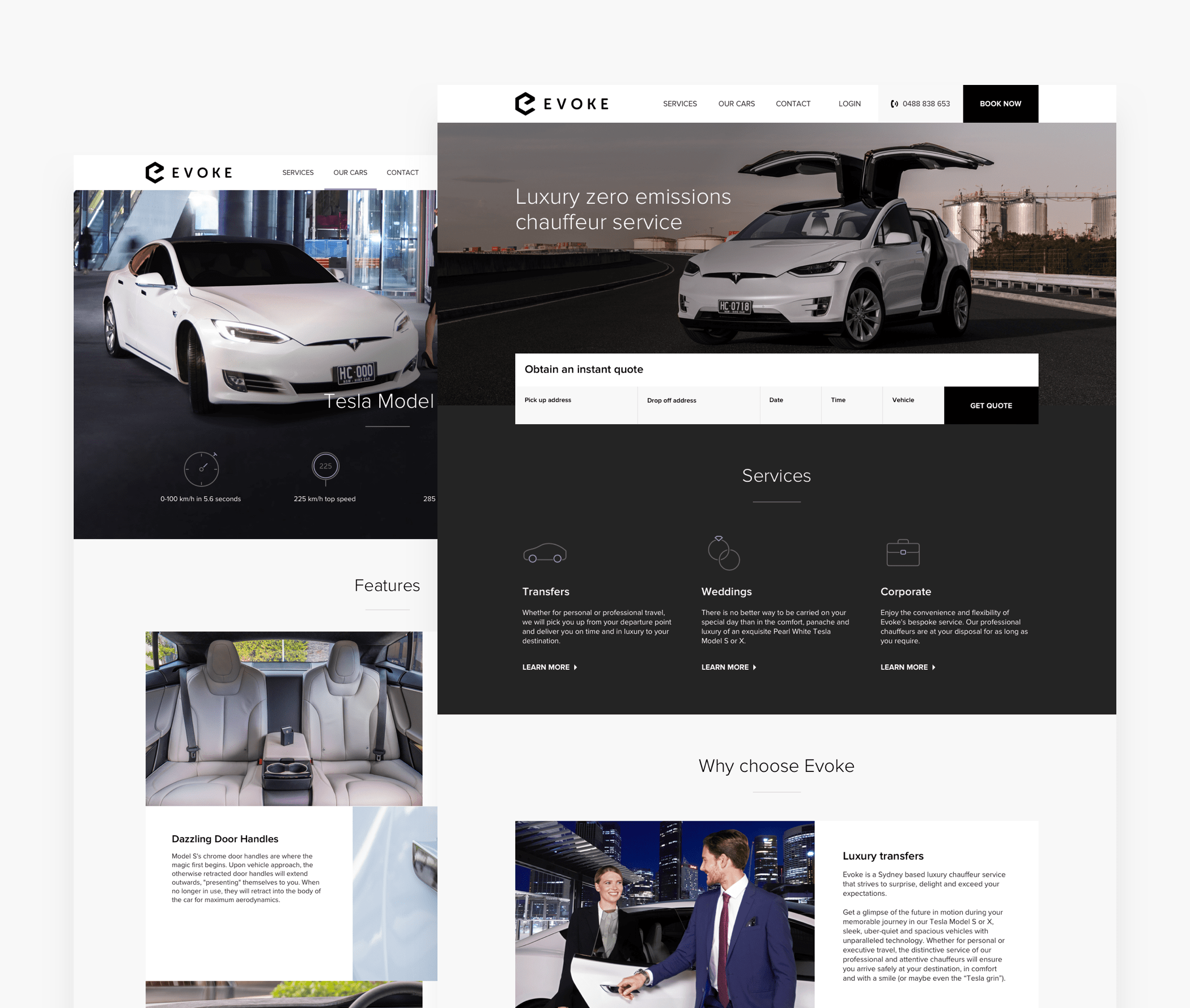 Evoke is Australia’s first zero emissions luxury chauffeur service with a fleet of Teslas, operating in Sydney and Melbourne. I have been working with them since they launched in 2015.