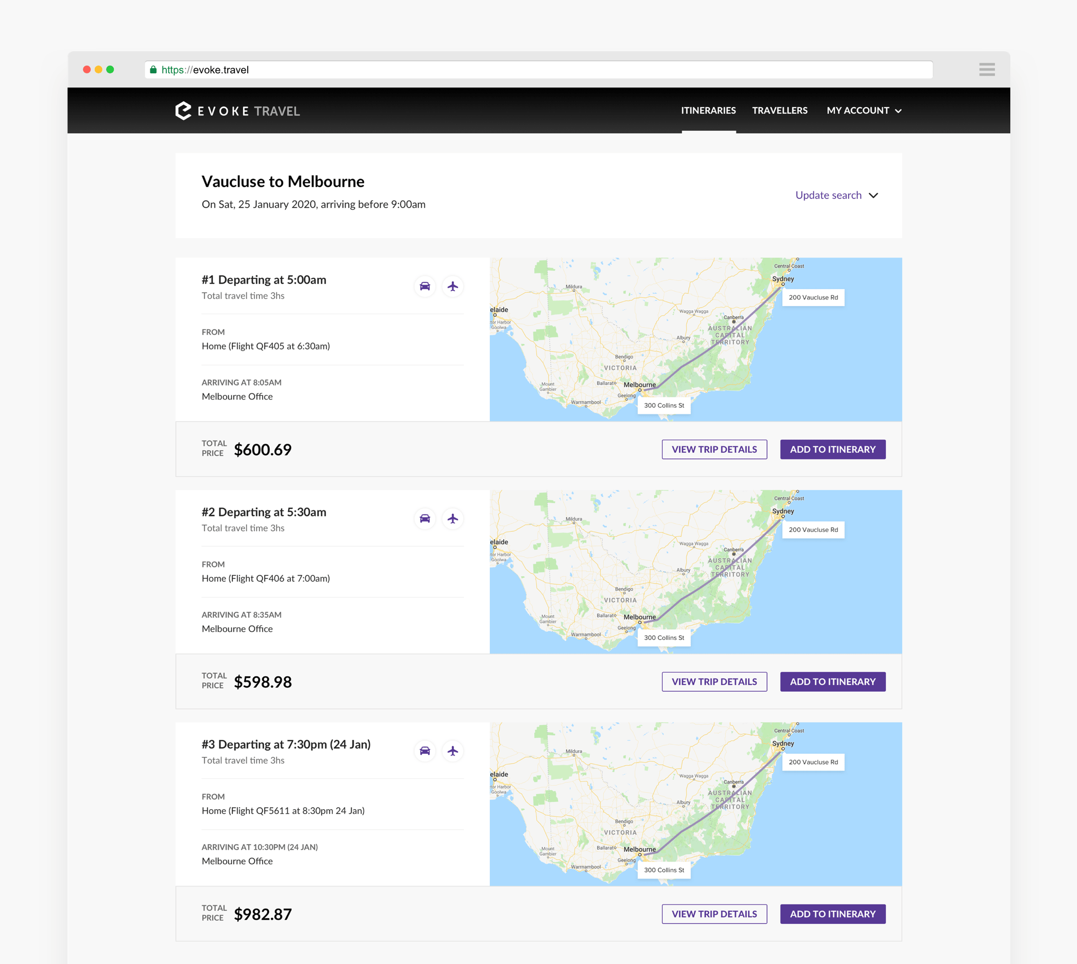And from there, Evoke came up with the idea to create a corporate travel booking platform.