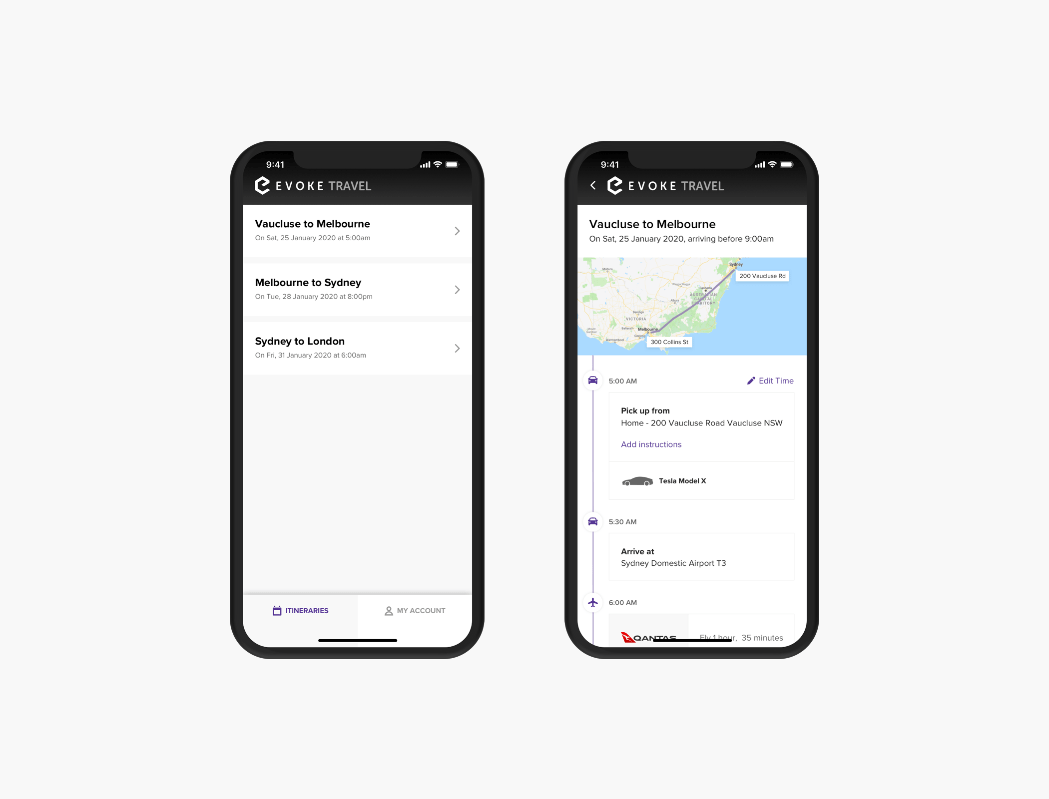Evoke decided to create a companion mobile app where travellers are able to see all their upcoming trips and make changes to individual travel components if needed.
