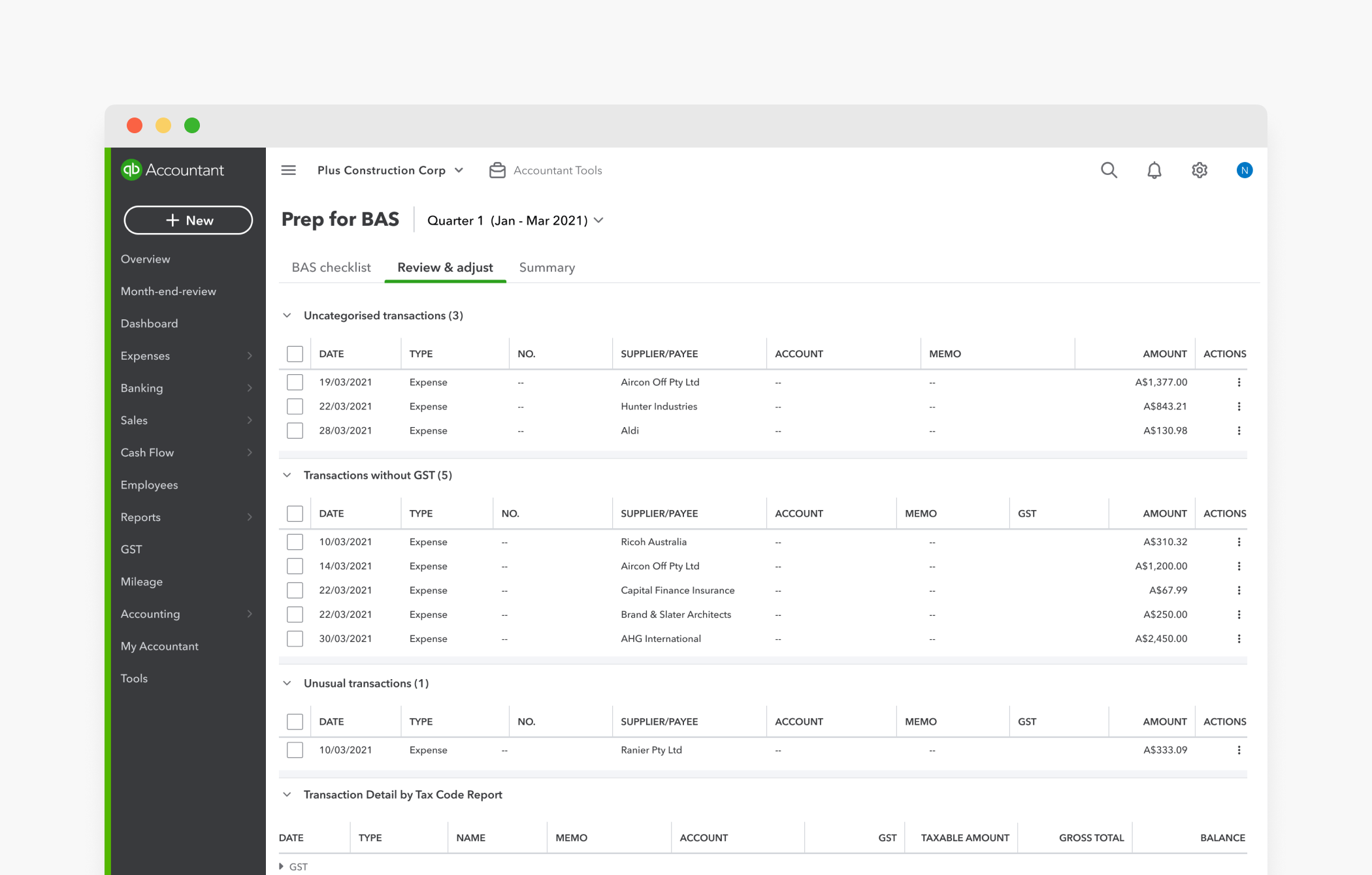 Flagged any unexpected or unusual balances, prompting advisors to manually verify and address potential issues before completing the BAS workflow.