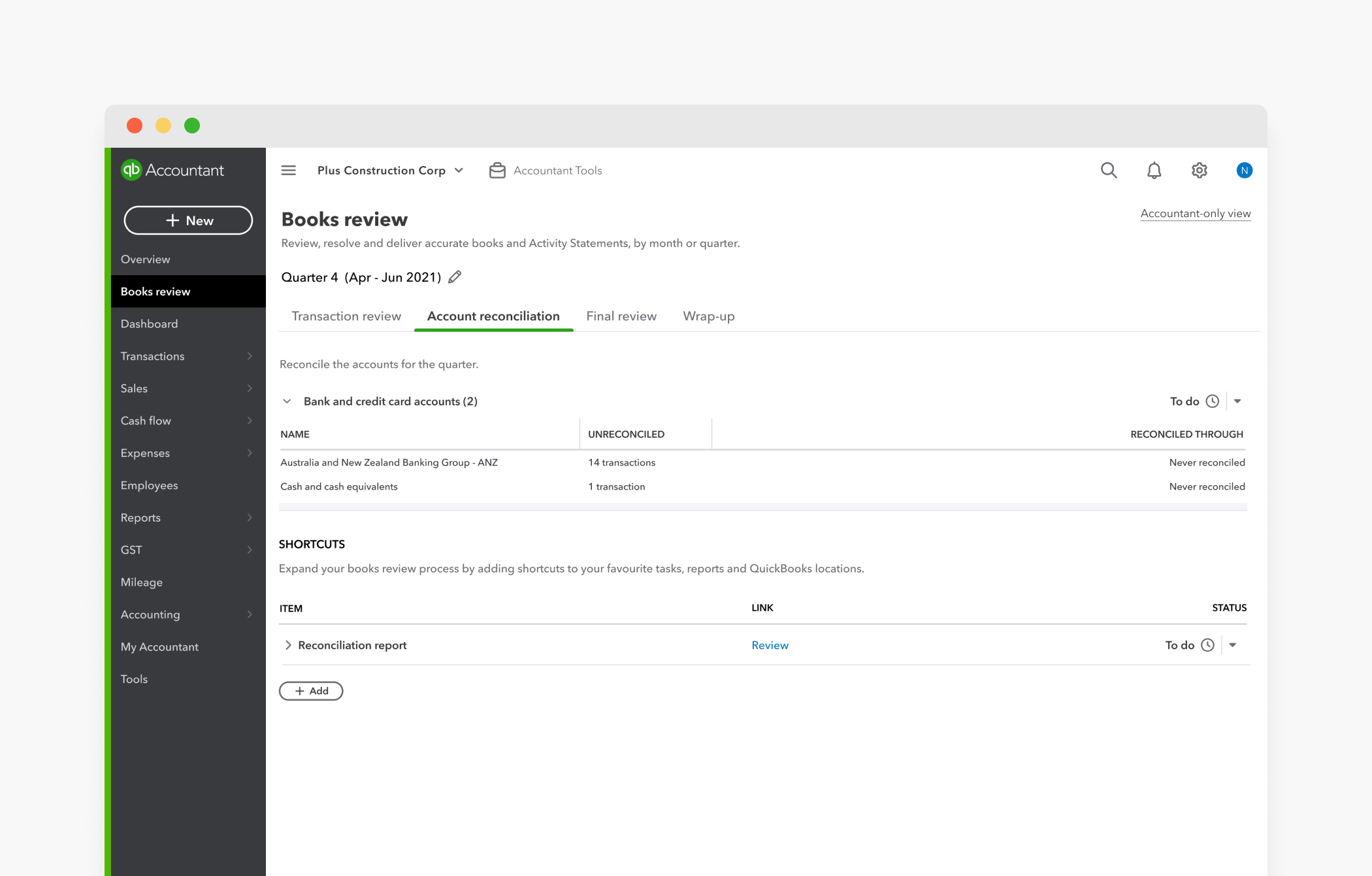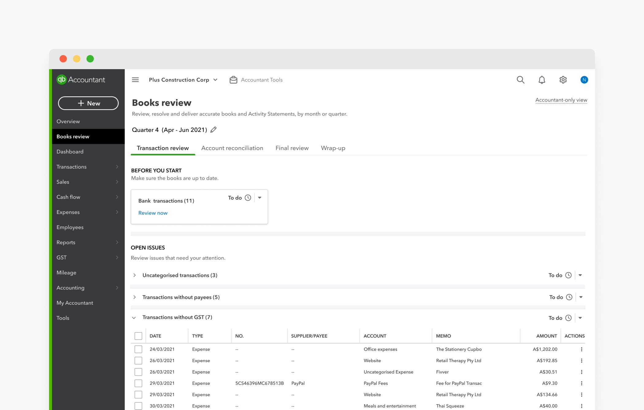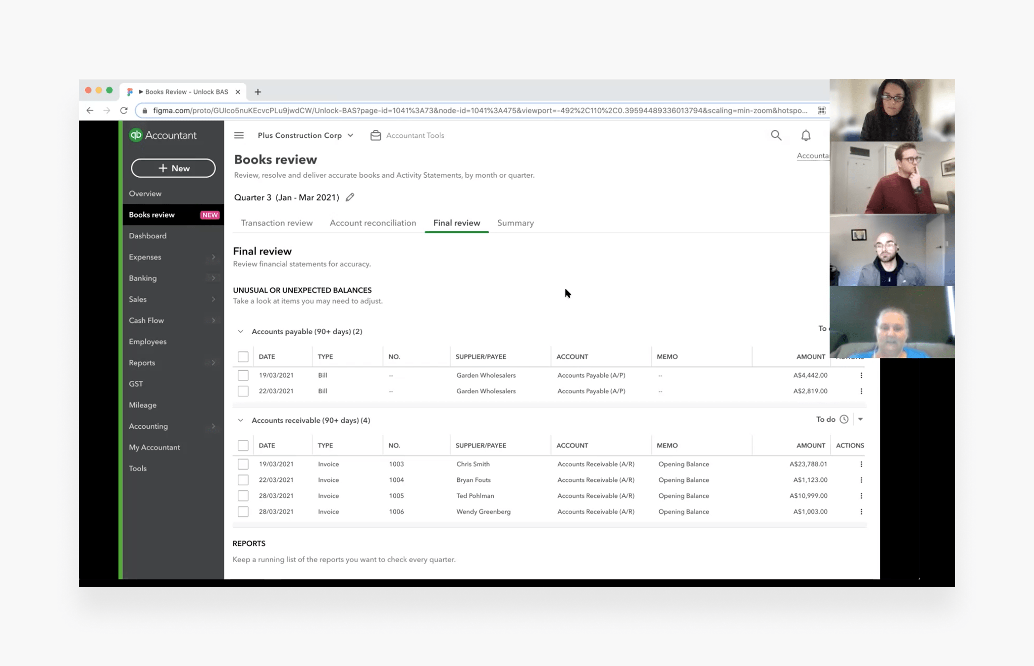 Based on feedback, we evolved the concept into a more modular, step-by-step experience: Books Review. While the Prep for BAS concept was initially designed around the quarterly BAS workflow, we learned that advisors would also use this tool for monthly clean-up—expanding its value beyond just compliance.