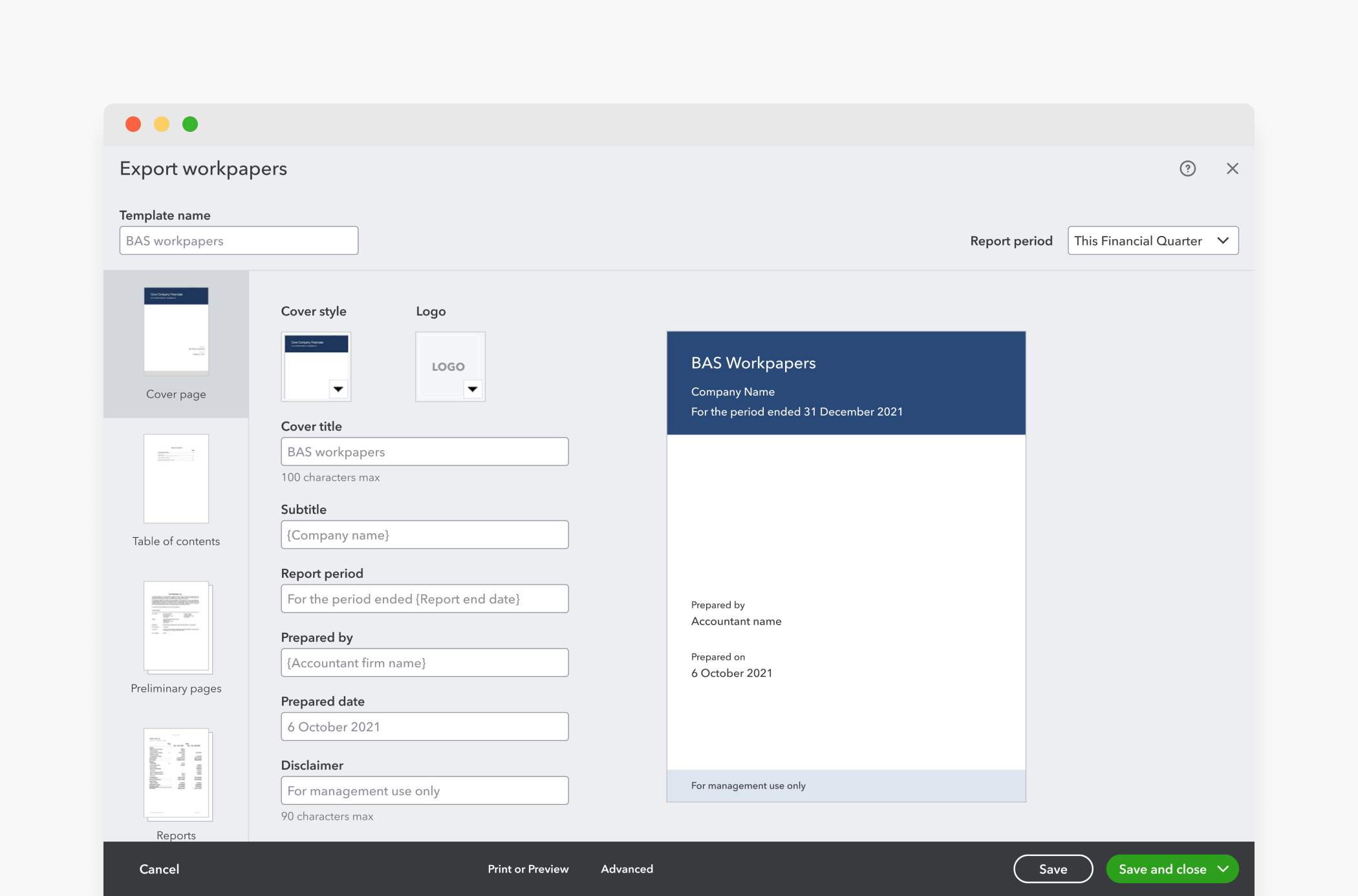 This led to the concept of Prep for BAS — a consolidated workflow within QuickBooks that would help advisors complete quarterly BAS work more efficiently and confidently, which included a customisable checklist pre-filled with common BAS tasks, a centralised review screen highlighting transactions needing attention, visibility of final BAS figures once pre-work was completed, and the ability to export data to LodgeiT for lodgement.